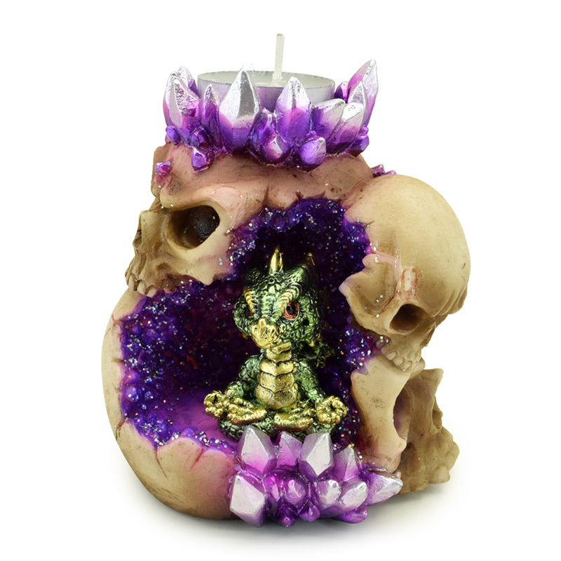 Svícen na čajovou svíčku Dračí mládě-lebka-jeskyně