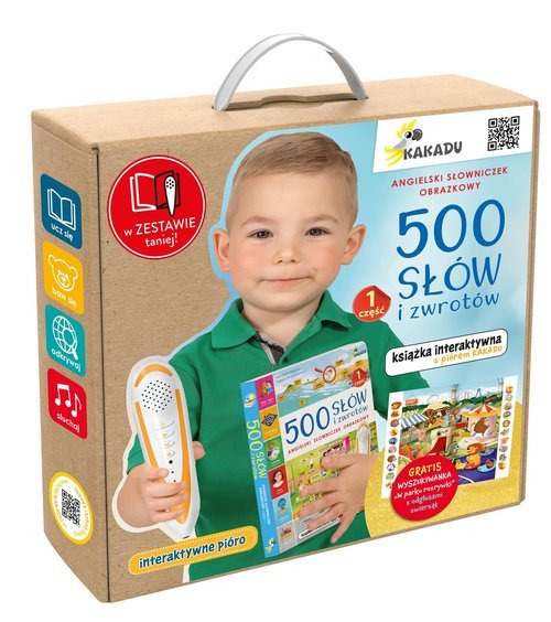 Zestaw zawiera: książkę 500 słów i zwrotów. Angielski słowniczek obrazkowy cz. 1, pióro Kakadu w trwałym etui i planszę z wyszukiwanką W parku rozrywki, dzięki której dzieci sprawdzą swoją spostrzegawczość, poznają nazwy zwierząt i usłyszą odgłosy, jakie one wydają. Całość została zamknięta w...
