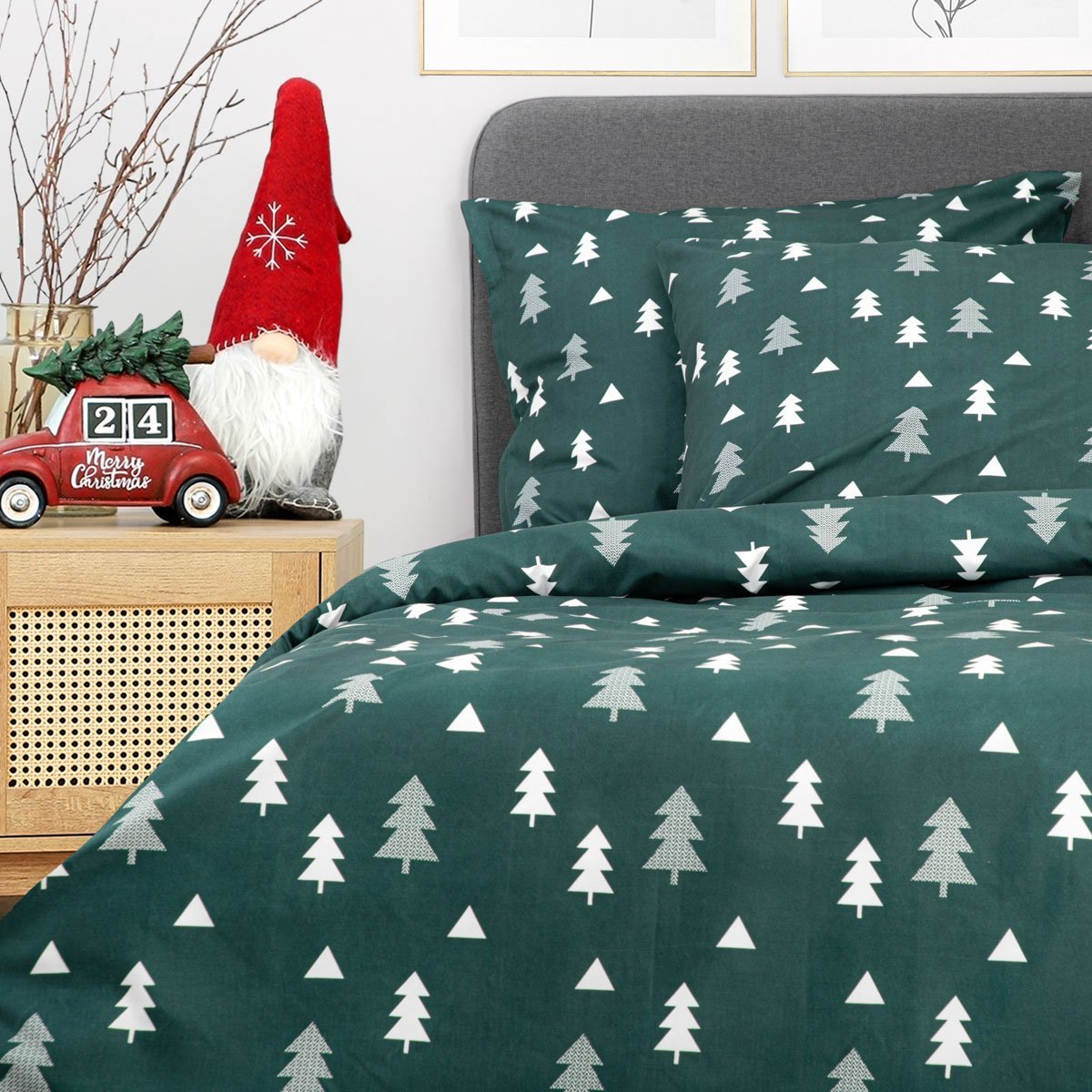 Vánoční mikrovláknové povlečení | PEMA | zelené s vánočními stromky | 200x220 cm | 986134 Homla