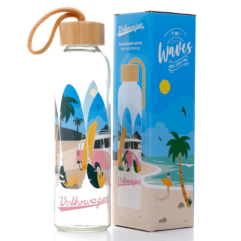 Skleněná láhev s bambusovým víčkem 500ml VW Volkswagen T1 karavan - Volání vln