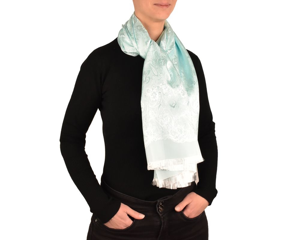 Elegantní šátek v modních metalických barvách rozzáří každý outfit.Rozměry: cca 180 x 65 cmMateriál: kašmírské hedvábí prečítať celé
