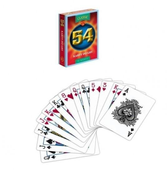 Talia do gry w karty. Zestaw zawiera aż 54 papierowe, wykonane z błyszczącego papieru karty. Tył każdej z nich ozdobiony jest specjalnym atrakcyjnym motywem. Są to klasyczne karty umieszczone w poręcznym i wygodnym kartonowym pudełeczku. Zestaw doskonale nadaje się do popularnych gier karcianych...