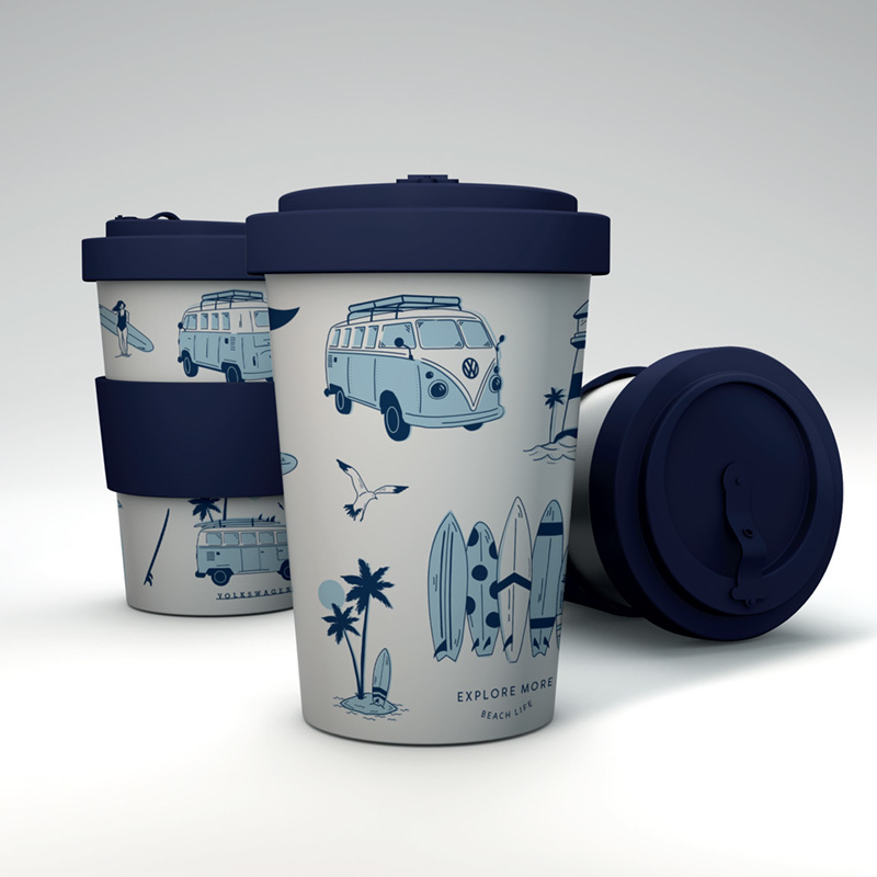 Cestovní hrnek -RPET- 400ml - VW Volkswagen T1 karavan - Nová dobrodružství