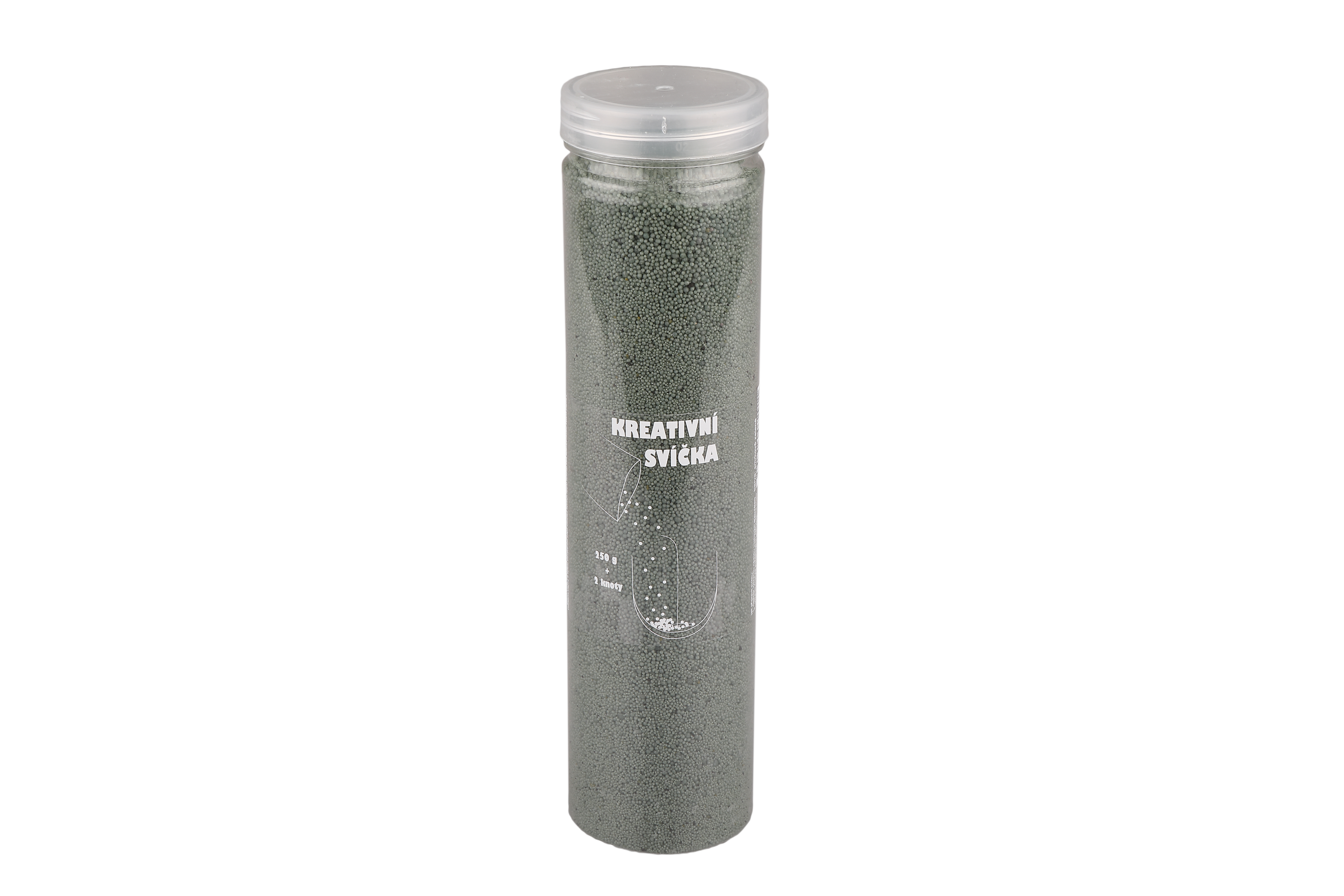 Smrkově zelený voskový granulát KERZENSAND pro tvorbu kreativních svíček. 250 g + 2 knoty příprava svíčky KERZENSAND: 1. naplňte vybranou nehořlavou nádobu voskovým granulátem 2. upravte knot na žádanou délku, délka knotu určuje dobu hoření voskového granulátu 3. knot o délce 4-5 cm...