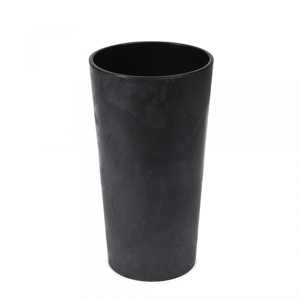 Vysoký plastový květináč Lilia beton efekt vyrobený z recyklovaného plastu. Květináč má kónický tvar a vyjímatelnou černou plastovou vložkou. Do plastové vložky můžete rostliny přímo sadit, pokud do dna této vložky vyvtráte odtokové otvory.