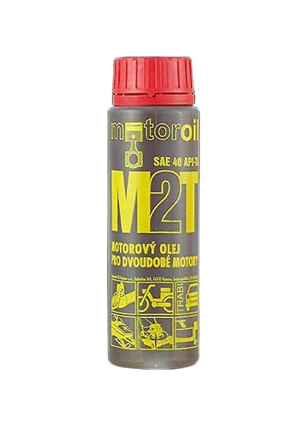 Motorový olej M2T 100 mlMotorový olej M2T je určen pro mazání dvoudobých zážehových motorů, mazaných směsí oleje a benzínu. Obsahuje aditiva zabraňující zanášení výfukových kanálů, zkratování elektrod zapalovacích svíček a korozi ložisek klikové hřídele.Specifikace:SAE 40API TB
