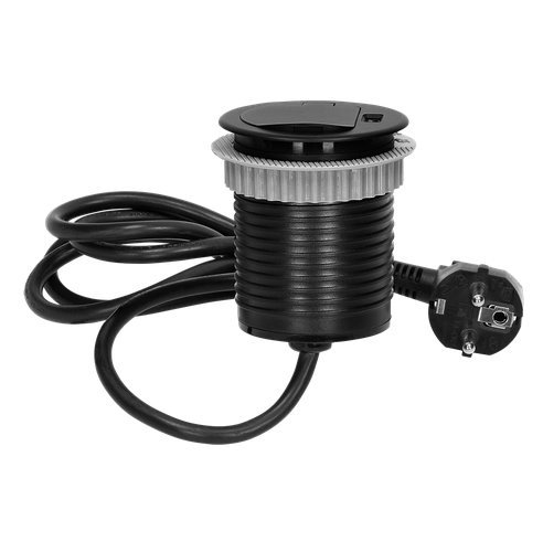 Síťová zásuvka s uzemněním a krytím proudových cest v kombinaci s nabíječkou USB ve výsuvném krytu. Zařízení je určeno k instalaci na stoly, desky, stoly a do rohů. Má přídavný kryt chránící síťovou zásuvku před prachem a 1,9m kabel.