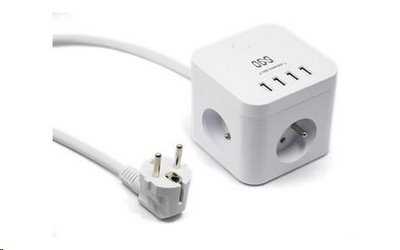 IN Přepěťová ochrana CUBE 1,5m, bílá Přepěťová ochrana ve tvaru kostky s prodlužovacím kabelem 1,5m. 3 zásuvky 230 V a 4 USB porty. Kostkový design a nízká hmotnost je vhodný pro cestování pro celou rodinu. Zároveň je také ideální pro umístění na pracovním stole v kanceláři, doma, hotelu, koleji...