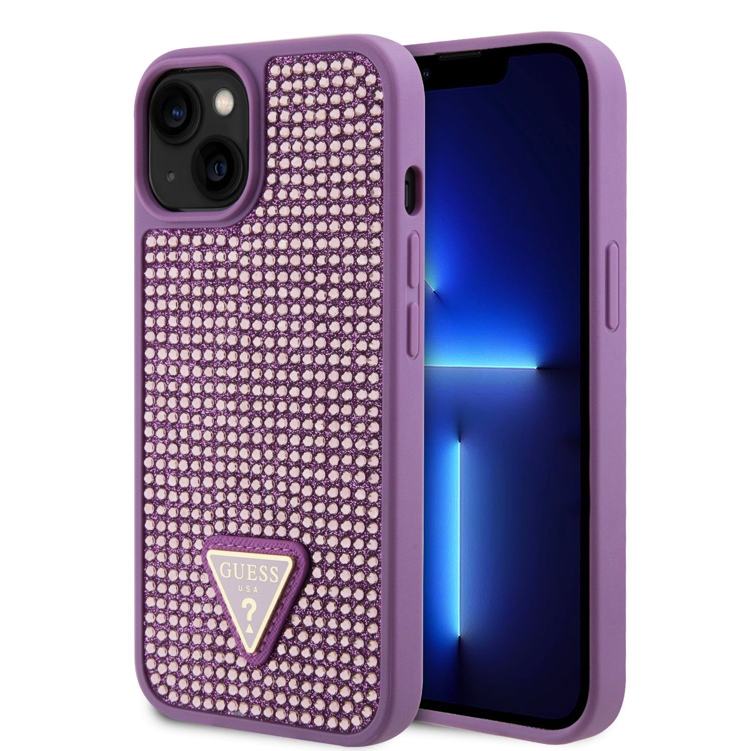 Guess Rhinestones Triangle Metal Logo Kryt pro iPhone 15 Purple
