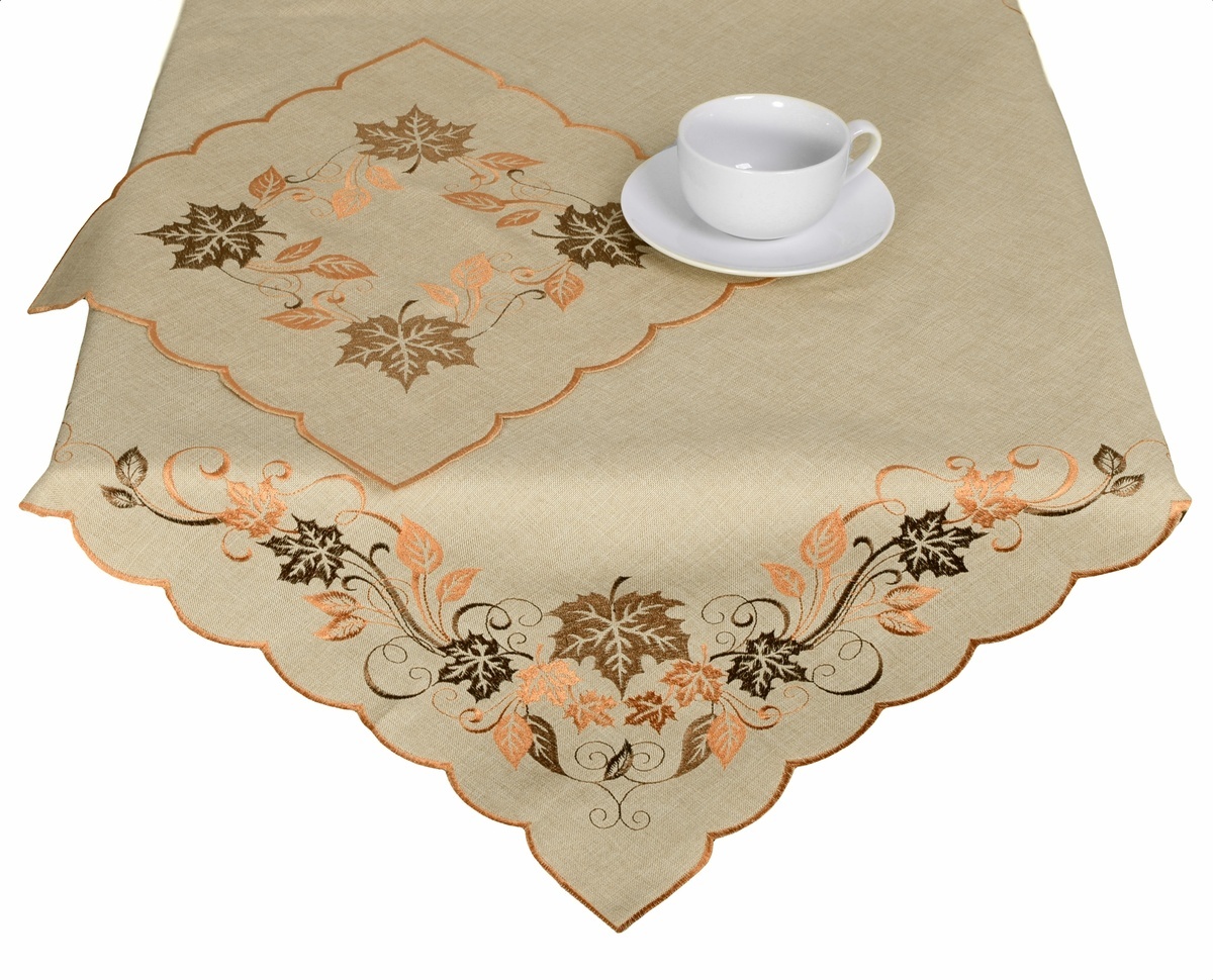 Nádherný vyšívaný ubrus s příjemným decentním vzorem a listí v krásné výšivce dokonale působí na prostřeném stole.Materiál: 100 % polyesterBarva materiálu: béžováBarva výšivky: odstíny oranožověéžové, hnědéCY 5585 m Rozměr 40 x 90 cm je v oválném tvaru prečítať celé