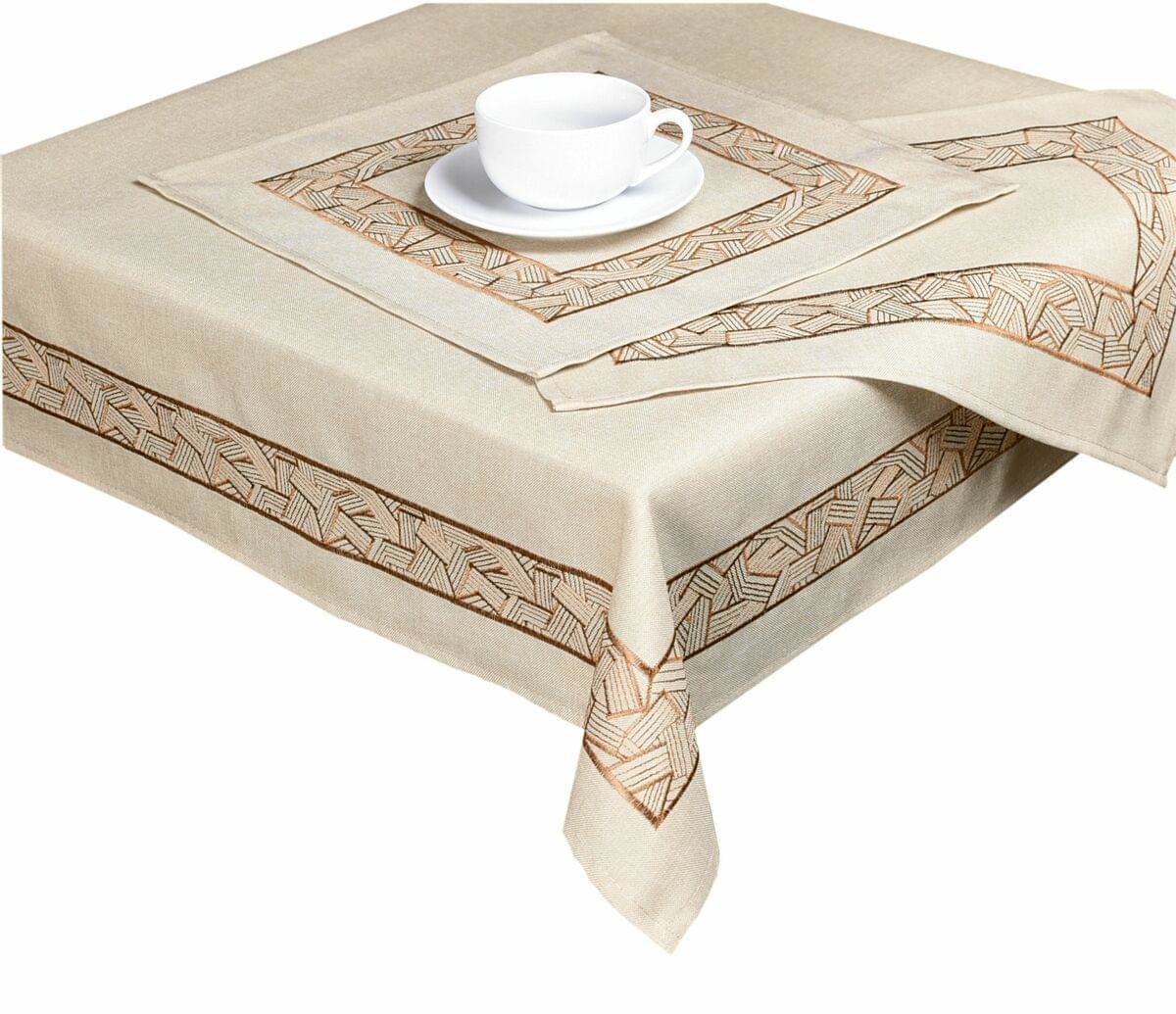 Nádherný vyšívaný ubrus s příjemným decentním geometrickým vzorem působí dokonale na prostřeném stole.Materiál: 100 % polyesterBarva materiálu: béžováBarva výšivky: odstíny hnědéV nabídce různé rozměryCY 719K-15-4 prečítať celé