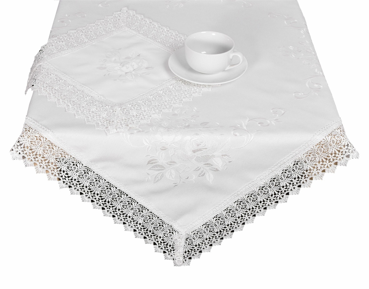 Ubrus celoroční, Růže s krajkou, bílý 40 x 140 cm