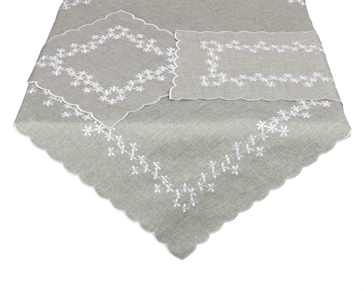 Nádherný vyšívaný ubrus s příjemným decentním vzorem pomněnek dokonale působí na prostřeném stole.Materiál: 100 % polyesterBarva materiálu: šedáBarva výšivky: odstíny bíléCY 5499-4m prečítať celé