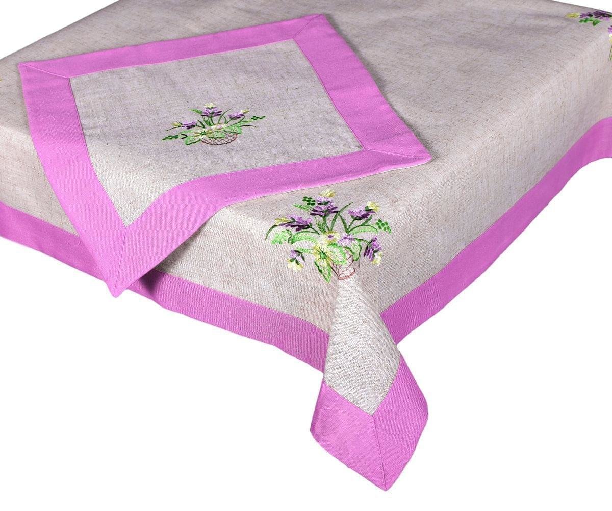 Forbyt, Ubrus vyšívaný, Levandule a fialový lem, béžový 35 x 160 cm
