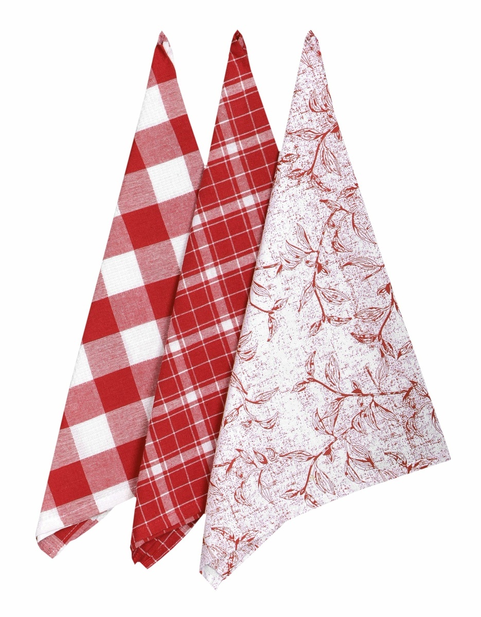 Utěrka bavlněná, Leaf, komplet 3 ks, červená