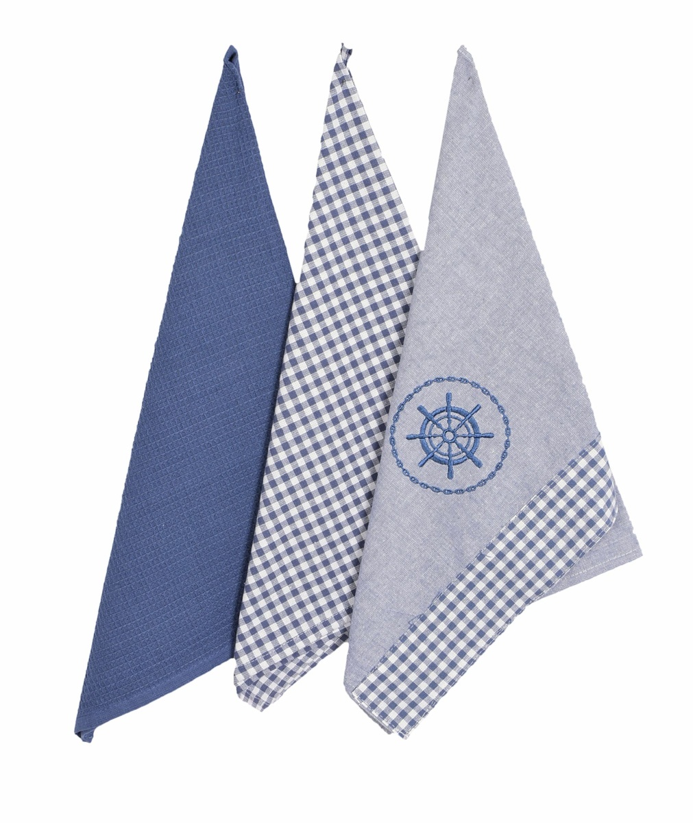 Utěrka bavlněná, Kruh a káro 2203, komplet 3 ks, modrá