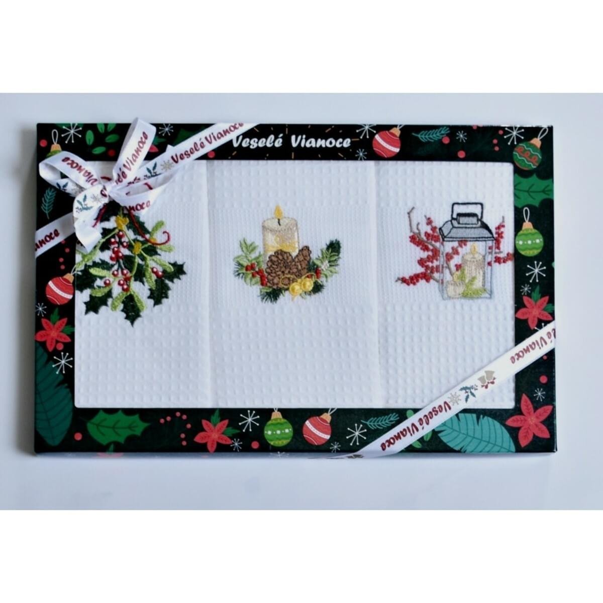 Elegantní vánoční dárková kazeta 3 ks bavlněných utěrek se sváteční vyšivkou. Utěrky jsou vyrobeny z přírodní 100 % bavlny se strukturou vafle, což zajistí perfektní savost.