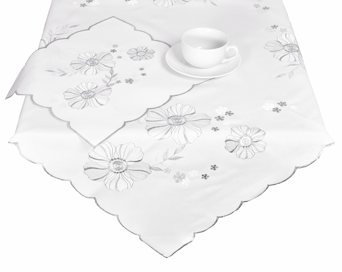 Nádherný vyšívaný ubrus s příjemným decentním vzorem květů a listí v krásné šedobílé výšivce dokonale působí na prostřeném stole.Materiál: 100 % polyesterBarva materiálu: bílosmetanováBarva výšivky: odstíny bílé, šedéCY 5761-1MRozměr 40 x 85 cm je v oválném tvaru prečítať celé