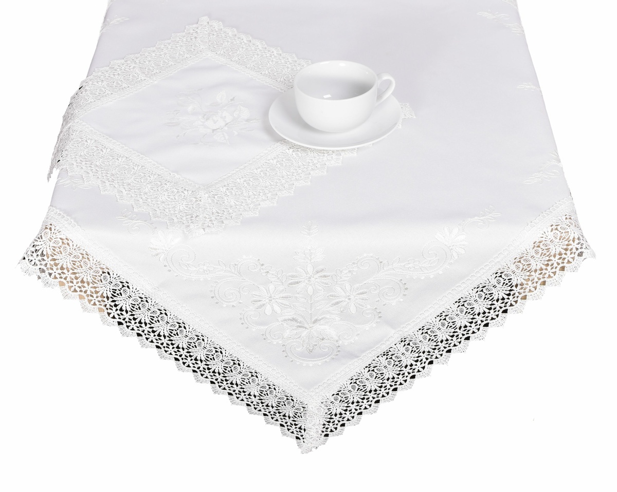 Ubrus celoroční, Bílá sasanka s krajkou, bílý 85 x 85 cm