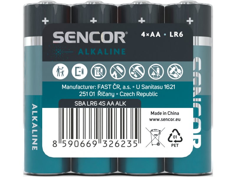 Jednorázové tužkové baterie AA (LR6), alkalický článek, napětí 1,5 V.Neobsahují kadmium, rtuť ani olovo.Balení / 4 ks.  prečítať celé