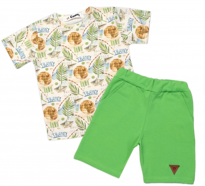 Tričko kr. rukáv + kraťásky s kapsami 2D sada, Cestovatel G-baby, zelené
