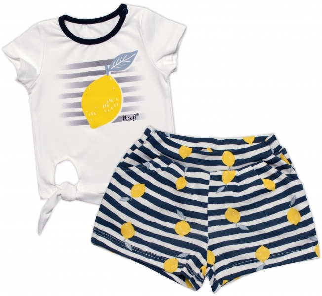 Dívčí triko+kraťasy 2D sada, Citrónky, Mrofi, bílá/modrá, vel. 98; 98 (2-3r)