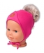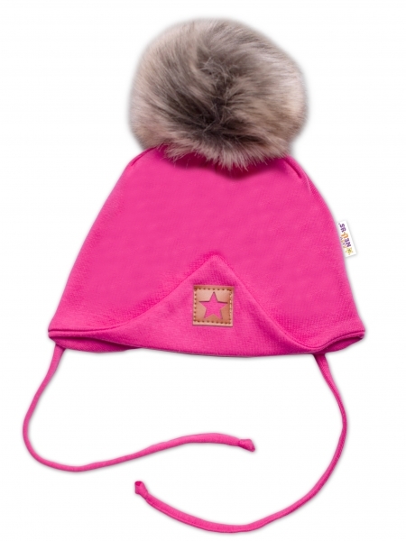 Zimní,podzimní bavlněná dvouvrstvá čepice s bambulí na zavazování Star, růžová; 56-68 (0-6 m)