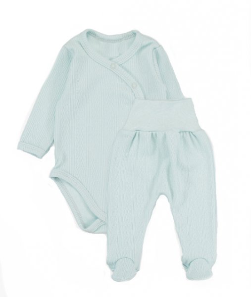 Zavinovací body dl. rukáv + polodupačky s žebrovaným vzorem, 2D sada MBaby, mátové; 56 (1-2m)