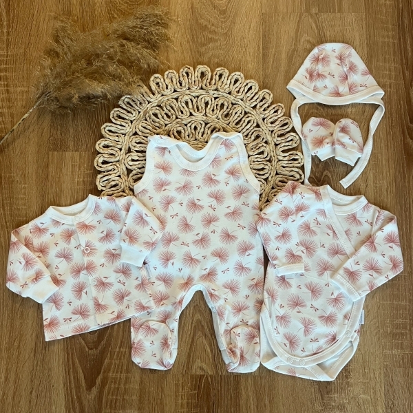 Novorozenecká sada do porodnice, Mamatti, smetanová/růžová - Pampeliška, vel. 62; 62 (2-3m)