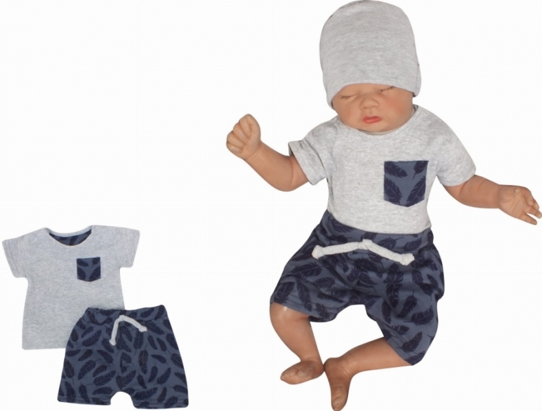 Z&Z 2-dílná sada tričko kr. rukáv, kraťásky s provázkem Pírka - granát, šedá, vel. 68; 68 (3-6m)