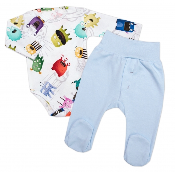Kojenecké body zap. u krku + polodupačky UFO, 2D sada, Mrofi, bílá/modrá; 68 (3-6m)