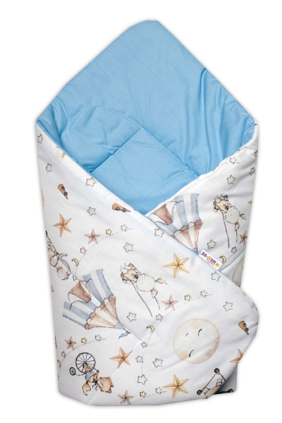 Novorozenecká bavlněná zavinovačka Baby Nellys, Cirkus, modrá/bílá