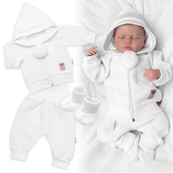 Sada obsahuje:Kabátek s kapucí, kalhoty a botičky.Baby Nellys česká značka - záruka kvality a spokojenosti.Materiál:Bavlna + akryl.Detailní rozměry:Kalhoty: Vel. 56 - délka 35 cm, pas - 16 cm x 2.Vel. 62 - délka 37 cm, pas - 17 cm x 2.Vel. 68 - délka 40 cm, pas - 18 cm x 2.Kabátek:Vel. 56 - délka...