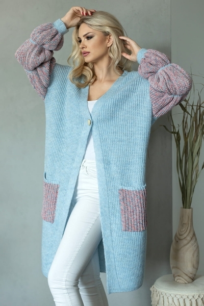 Podrobnosti:Dlouhé nabírané rukávy, volný dlouhý střih, měkký a nadýchaný kardigan, zapínání na knoflík.Materiál: Akryl 55%, Vlna 18%, Polyester 20%, Polyamid 7%.Rozměry:Celková délka: 106 cm.Šířka: 64 cm.jakost.Rozměry se mohou lišit + - 3 cm v závislosti na barvě. prečítať celé