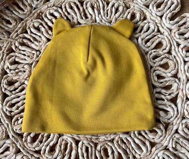 Kojenecká čepička s oušky Mamatti, Balón - hořčicová, vel. 62; 62 (2-3m)