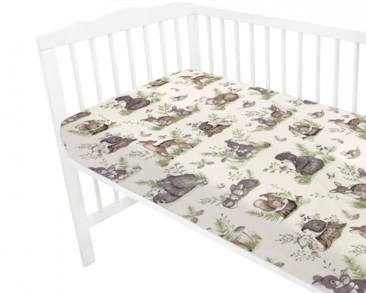 Dětské bavlněné prostěradlo do postýlky, Pohoda v lese - ecru, 140 x 70 cm; 140x70