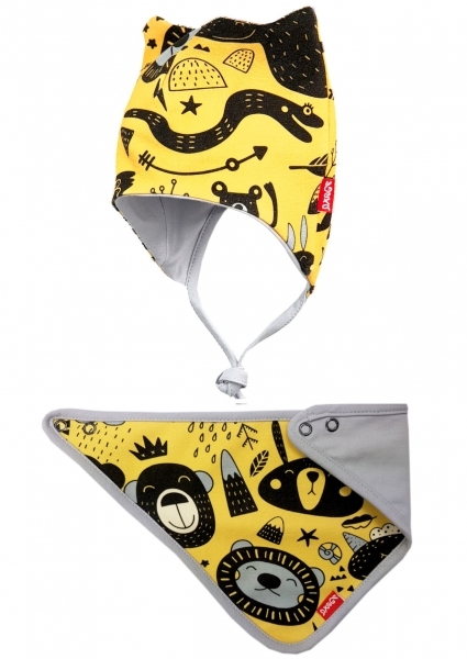 Čepice a šátek jsou vyrobeny ze dvou vrstev certifikované bavlny.