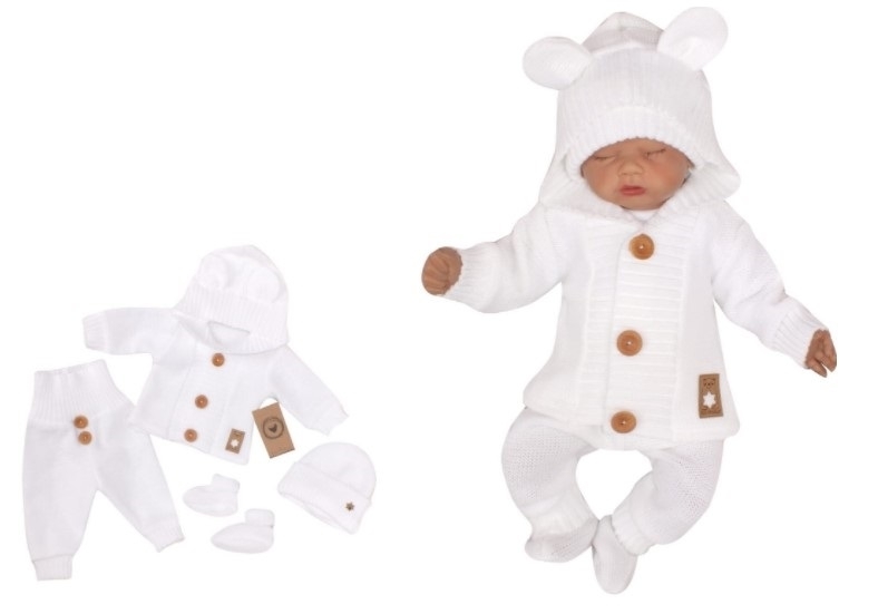 Z&Z 4-dílná kojenecká soupravička, kabátek, tepláčky, čepička a botičky - bílá; 56 (1-2m)