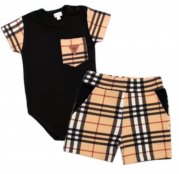 Body kr. rukáv + kraťásky s kapsami 2D sada, Kostka G-baby, černá, vel. 86; 86 (12-18m)