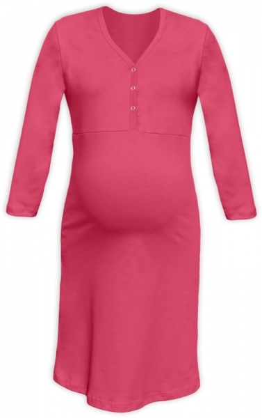 Těhotenská noční košile, která je přizpůsobená i pro kojení - 3/4 rukáv. Noční košile vhodná díky své elastičnosti pro těhotné ženy a díky hlubokému výstřihu se zapínáním na 3 cvočky je vhodná i pro kojící ženy, které se snadno a rychle dostanou k mlíčku. Košile jsou šité z o trošku silnějších...