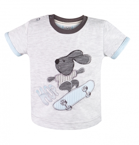 Bavlněné triko krátký rukáv Myšák HOP, Minetti, šedé; 74 (6-9m)