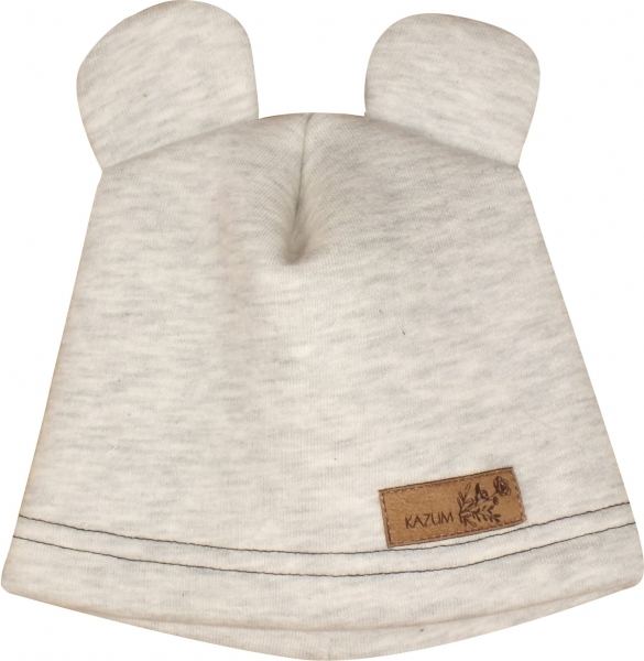Teplá dětská čepice Kazum, bavlněná s oušky, šedá, vel. 80/86; 80/86 (12-18m)