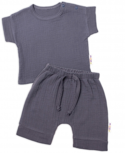 Baby Nellys 2-dílná mušelínová soupravička, tričko + kraťasky BOY, granát; 56 (1-2m)