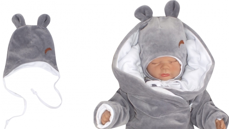 Z&Z Velurová čepice na zavazování s oušky, šedá, vel. 68/74; 68/74 (6-9m)