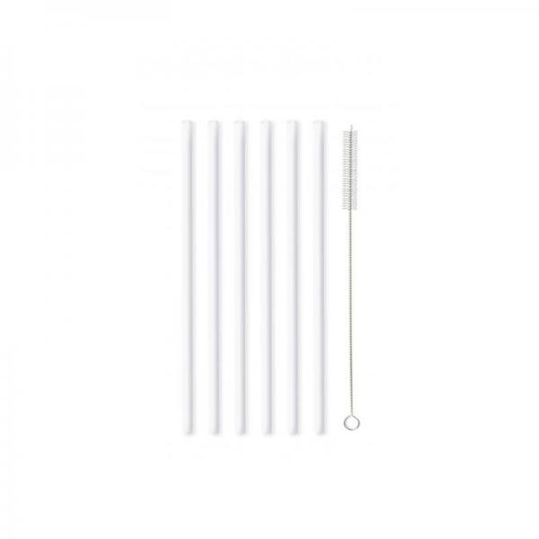 Vialli Design Skleněné brčko bílé, rovné 200 mm, 6 ks + kartáček, 6612