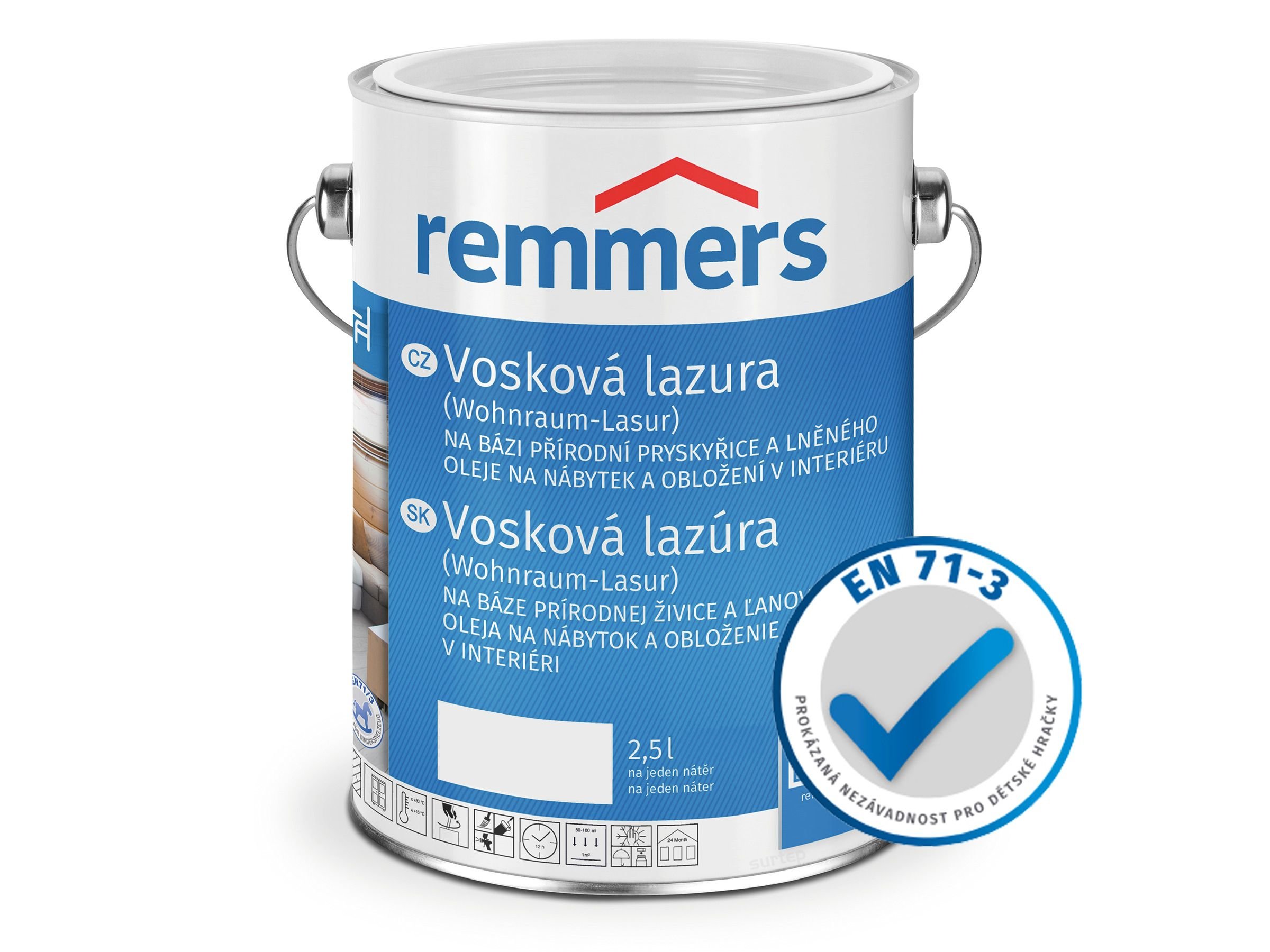 Remmers - Vosková lazura 2,5lNa bázi přírodní pryskyřice a lněného oleje na nábytek a obložení v interiéruOblast použitíVlastnosti Dřevo v in... Remmers - Vosková lazura 2,5lNa bázi přírodní pryskyřice a lněného oleje na nábytek a obložení v interiéruOblast použitíVlastnostiDřevo v...