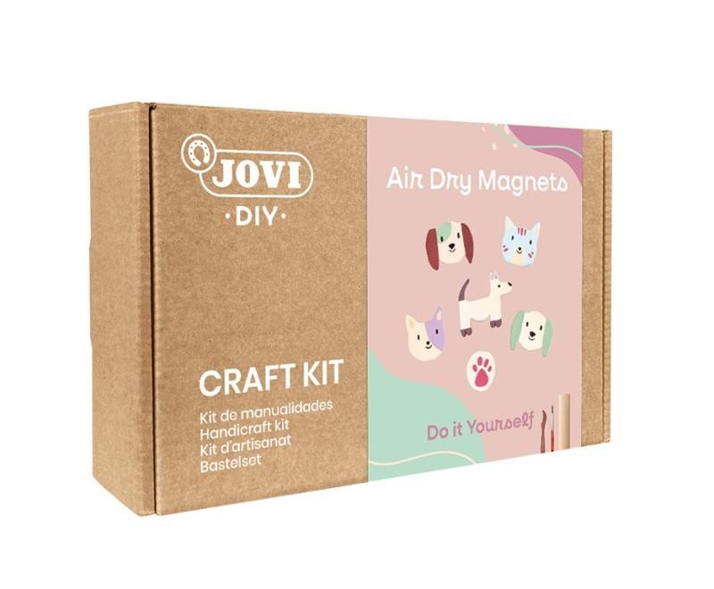 Kreativní sada na výrobu magnetek ze samotvrdnoucí hmoty. Obsahuje návod krok za krokem + QR tutorial video. Balení obsahuje: JOVI samotvrdnoucí hmota 500 g, 1 ks dřevěný váleček, 5 ks modelovacích špachtlí, 1 ks brusný papír, 8 ks 15 ml kvašových temperových barev, 2 ks štětců, 1 ks zápisník /16 stran/, 9 ks magnetek a tištěný barevný návod krok za krokem.