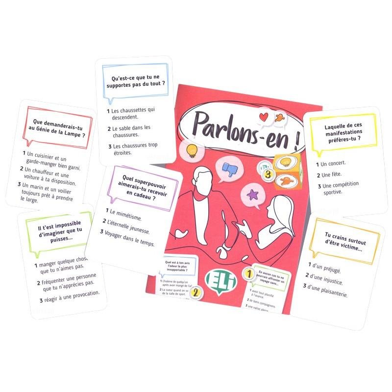 Parlons-en ! - gra językowa (francuski) "Parlons-en !" to gra karciana rozwijająca umiejętność mówienia po francusku na poziomach średnio zaawansowanym (B1, B2) i zaawansowanym (C1). Gra towarzyska w konwencji quizu, w której gracze odpowiadają na pytania z różnych kategorii, stymulując...