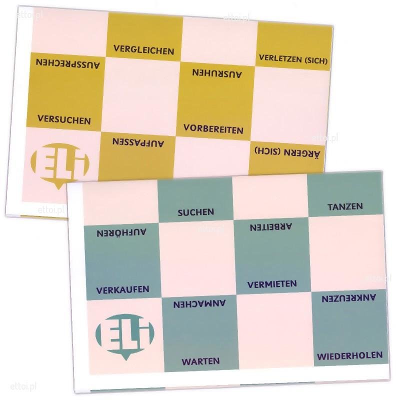 Das Dame-Spiel der Verben - gra językowa (niemiecki) Das Dame-Spiel der Verben to edukacyjna gra planszowa, będąca połączeniem warcabów i nauki niemieckich czasowników regularnych i nieregularnych. Skierowana jest do dzieci od 7 roku życia, młodzieży i dorosłych na poziomie A1-B2. Gracze uczą się...