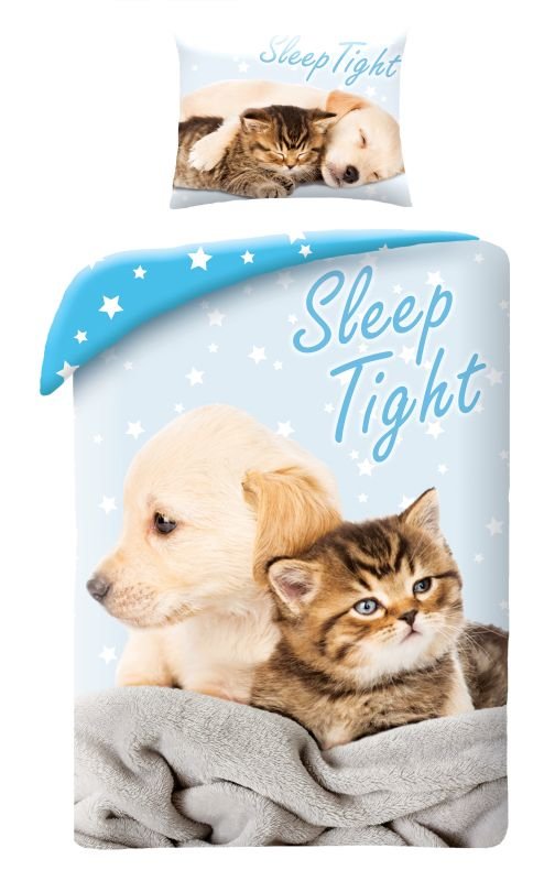 HALANTEX Povlečení ve vaku Kotě a Štěně blue 140/200, 70/90